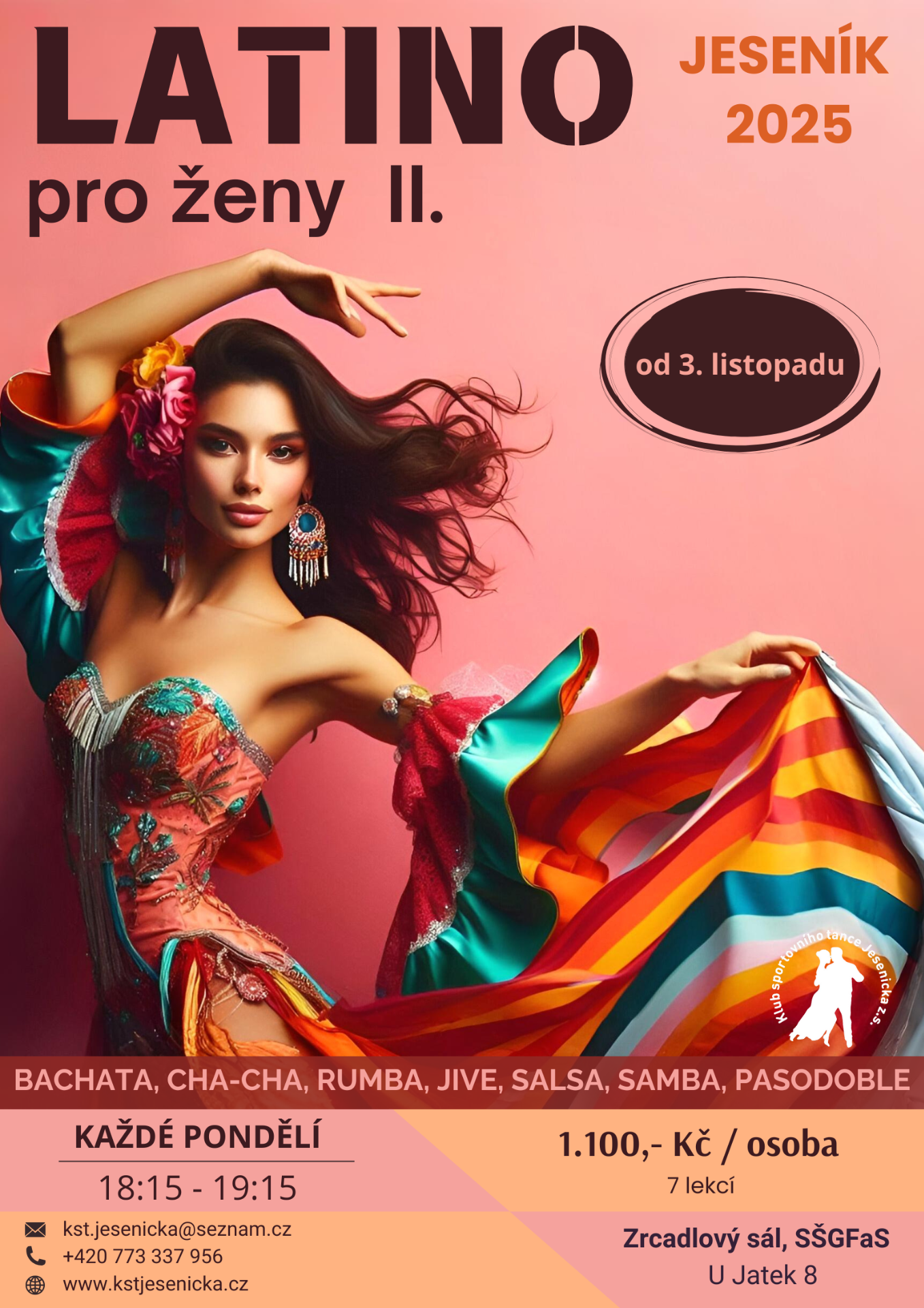 Kurz LATINO pro ženy je nejen o tanci, ale o celkovém zážitku plném zábavy, pohybu a nové energie.
